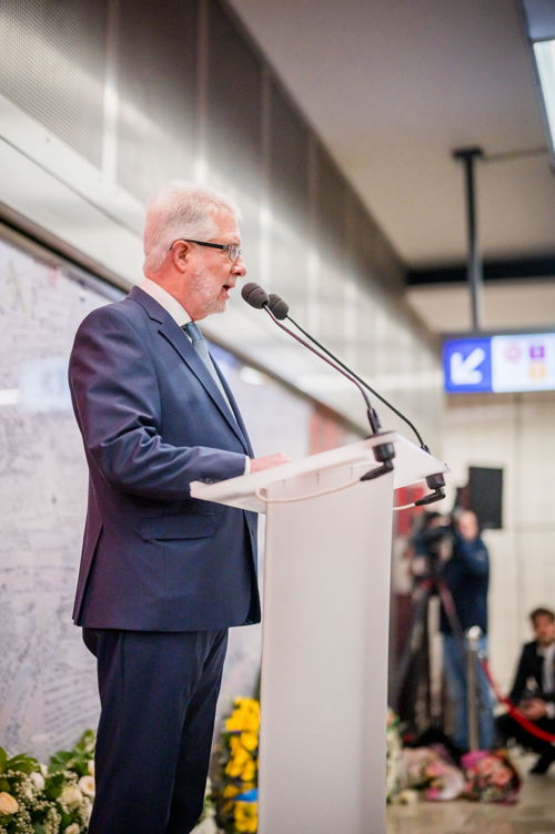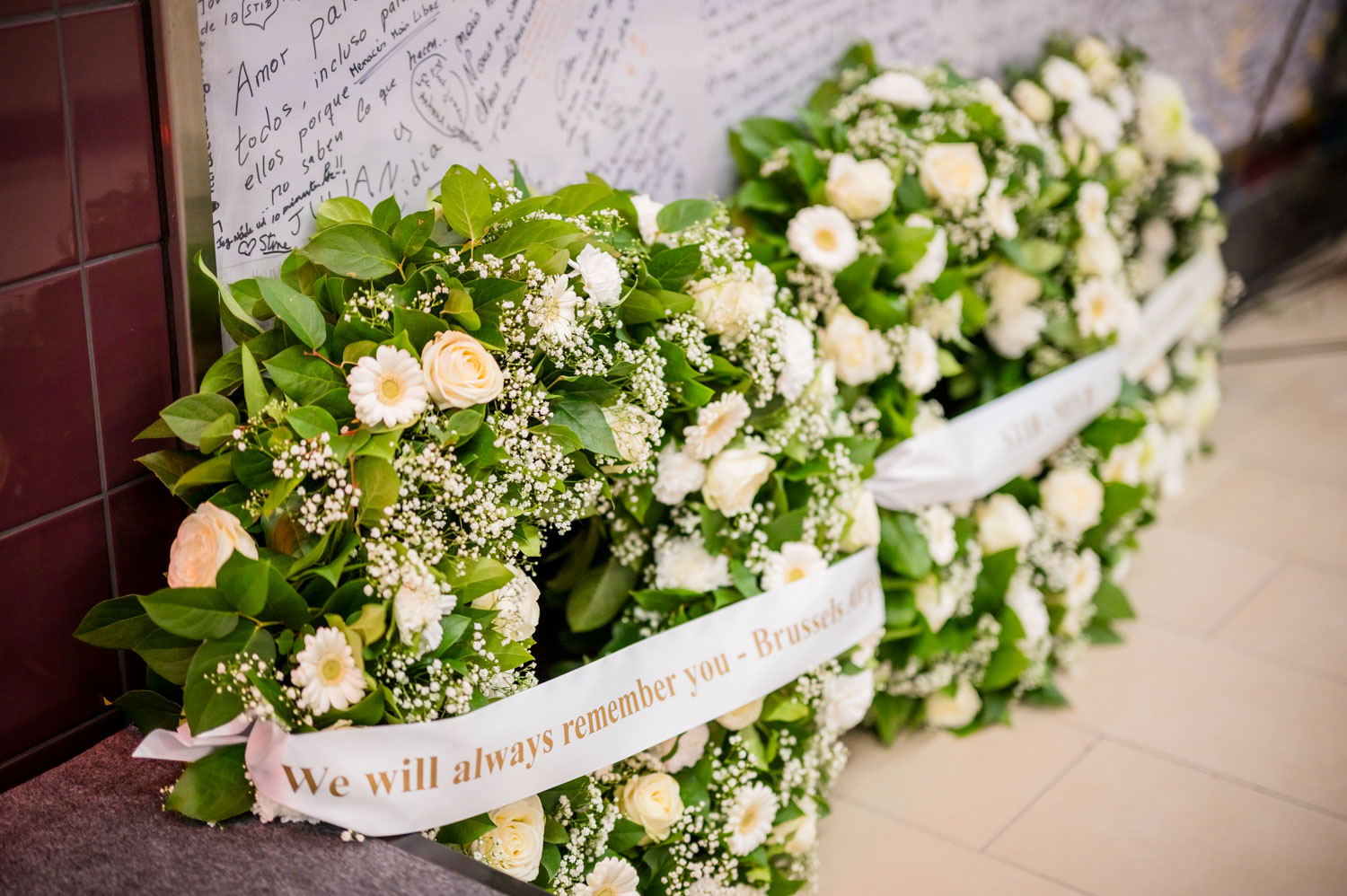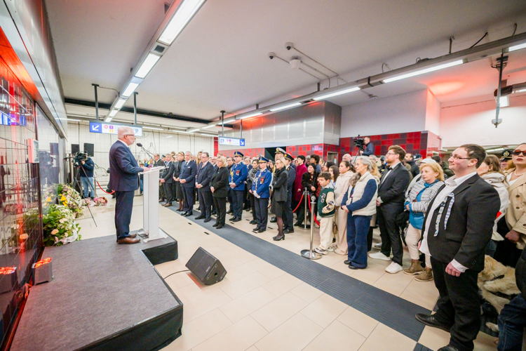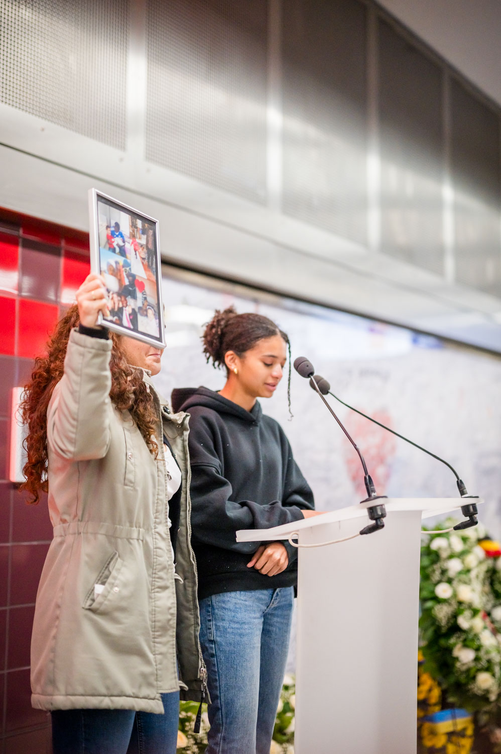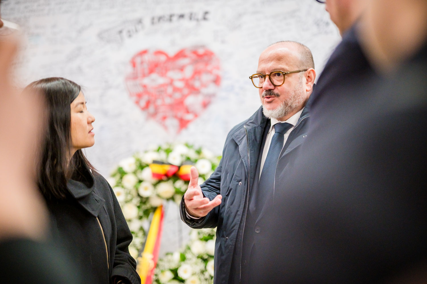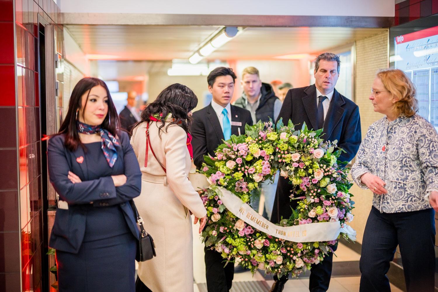 La cérémonie s'est tenue dans la mezzanine de la station de métro, devant le panneau en mémoire des victimes sur lequel témoignages et messages, inscrits tout autour du dessin d'un coeur, rappellent la douleur vécue lors des attentats, mais surtout l'espoir et la force qui unit chacun et chacune dans les moments difficiles.