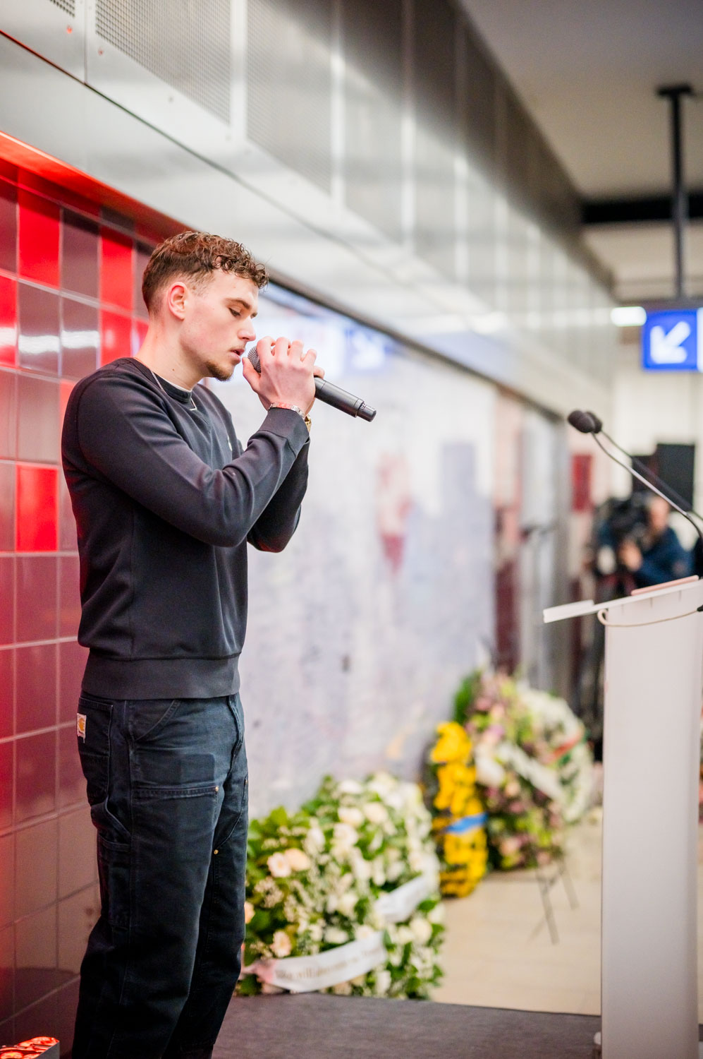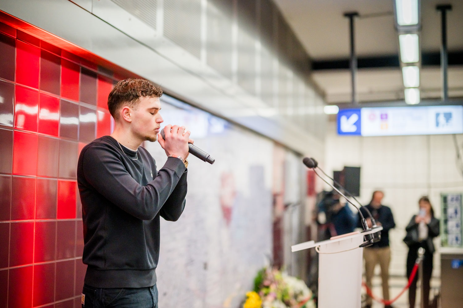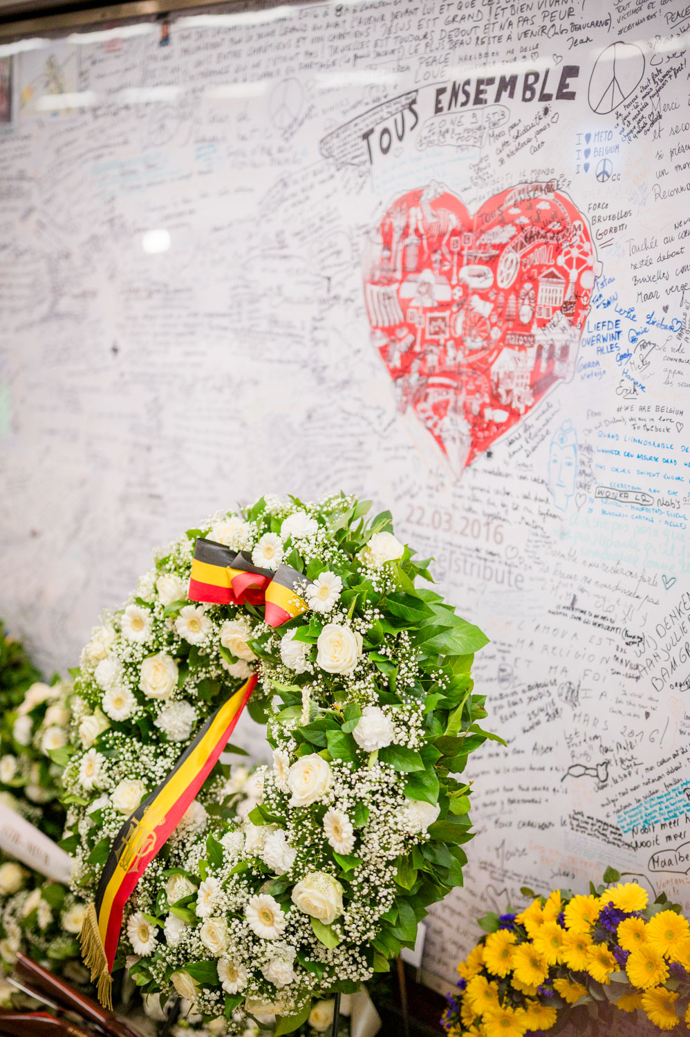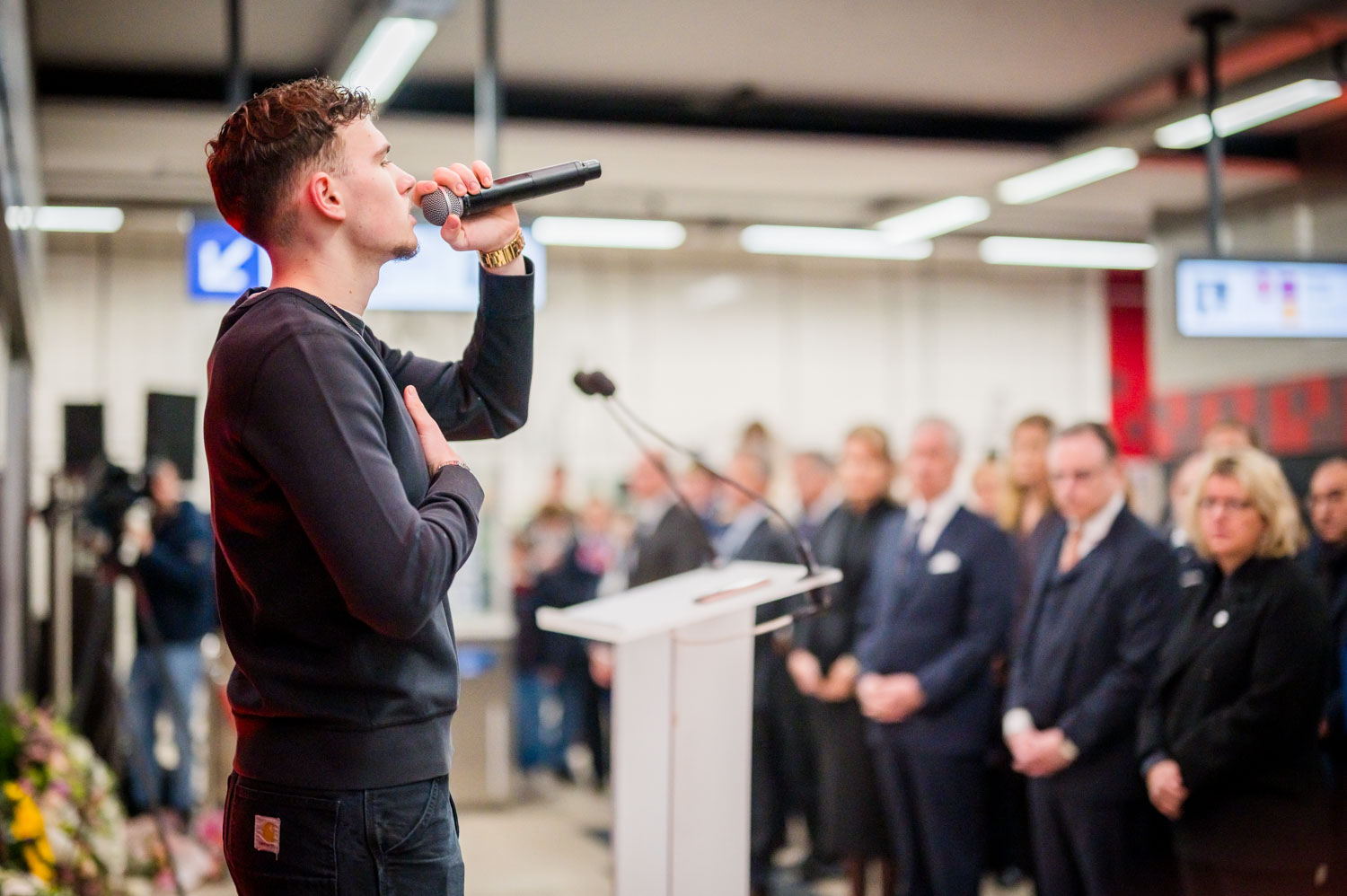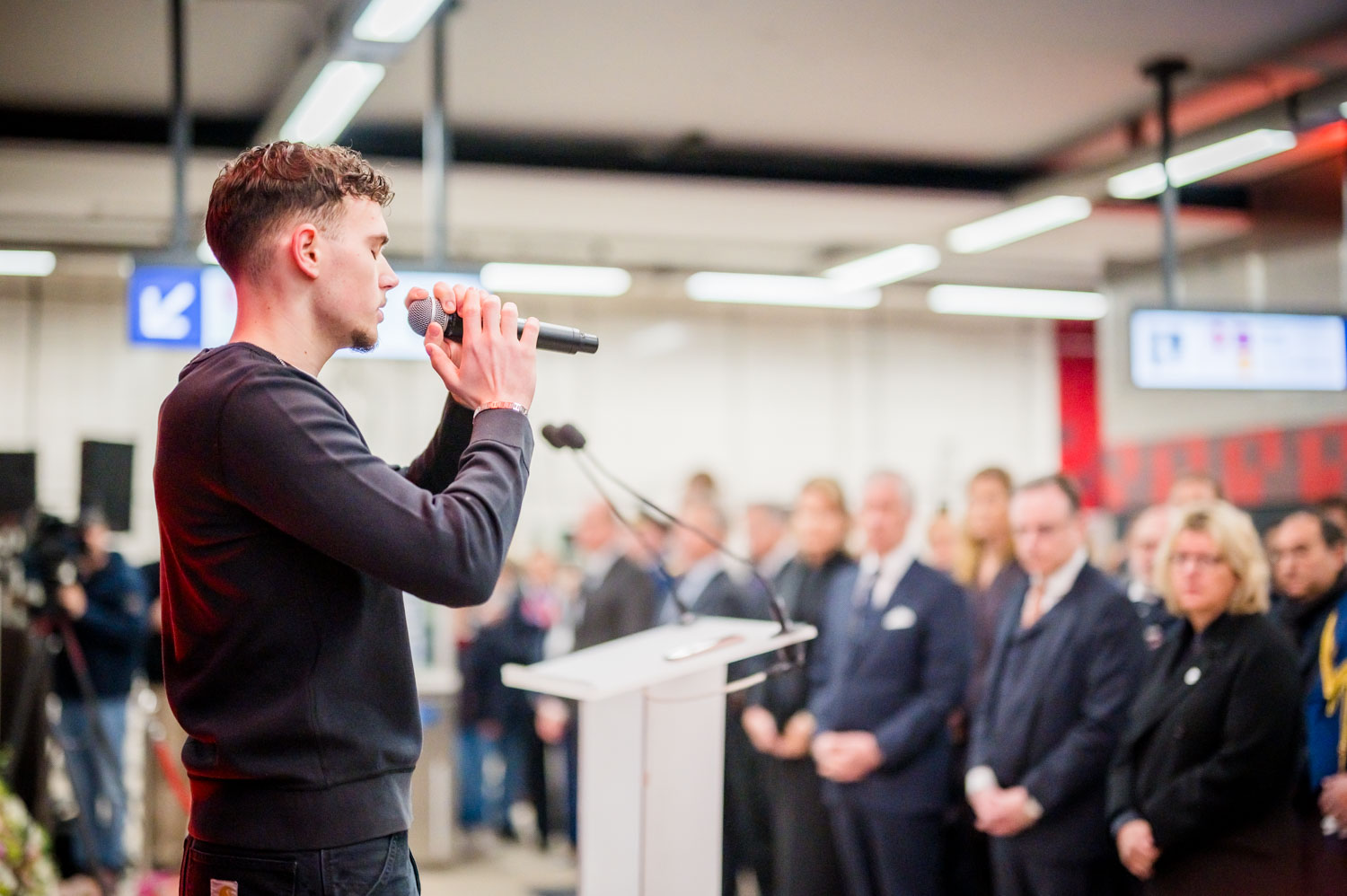 La cérémonie s'est tenue dans la mezzanine de la station de métro, devant le panneau en mémoire des victimes sur lequel témoignages et messages, inscrits tout autour du dessin d'un coeur, rappellent la douleur vécue lors des attentats, mais surtout l'espoir et la force qui unit chacun et chacune dans les moments difficiles.
