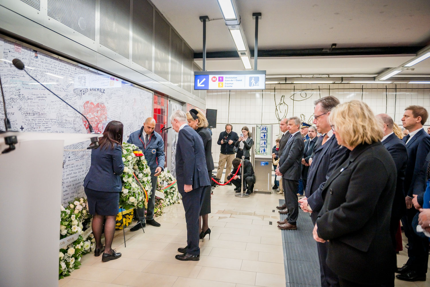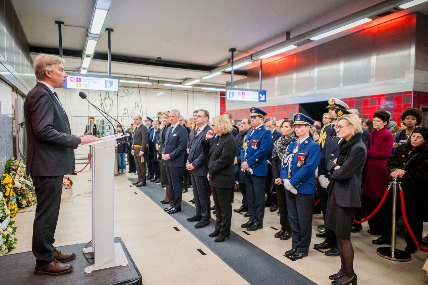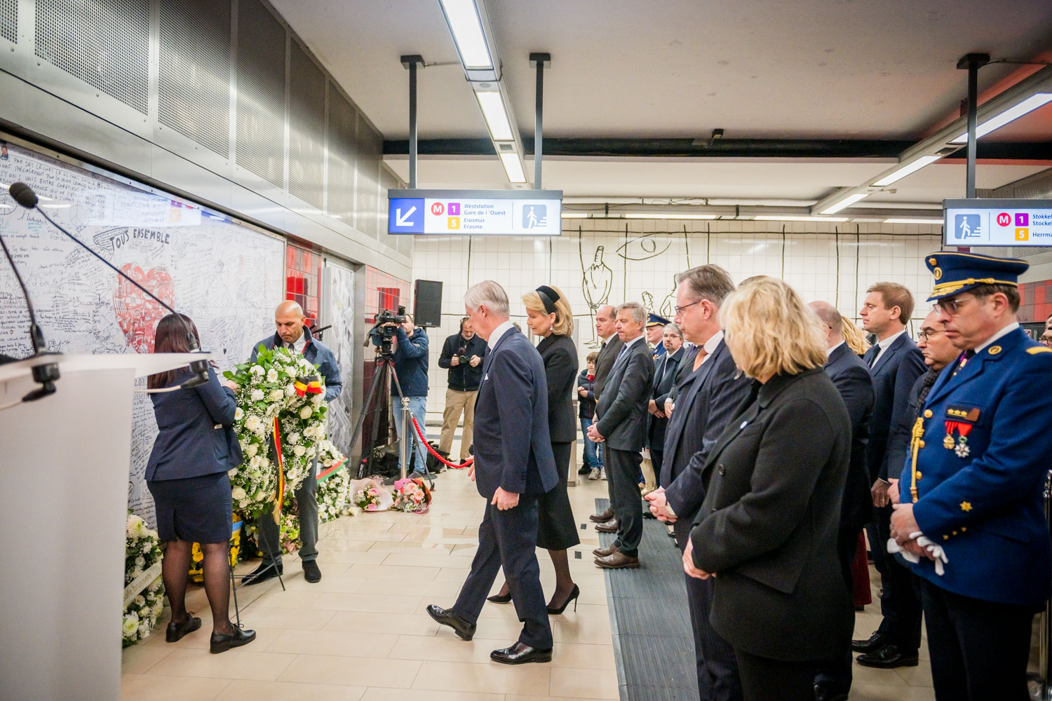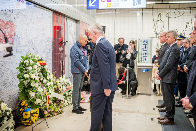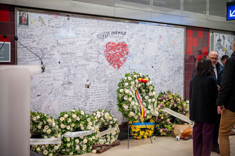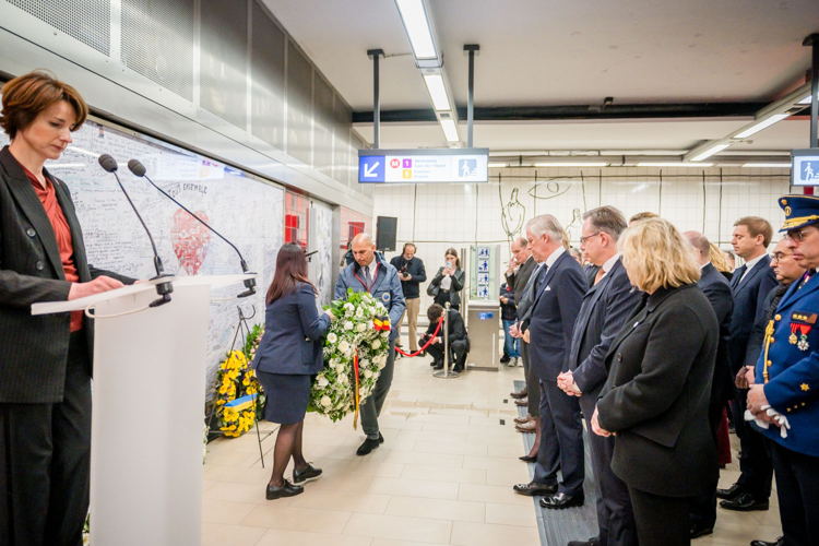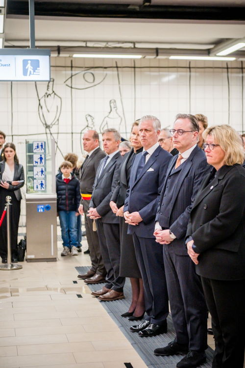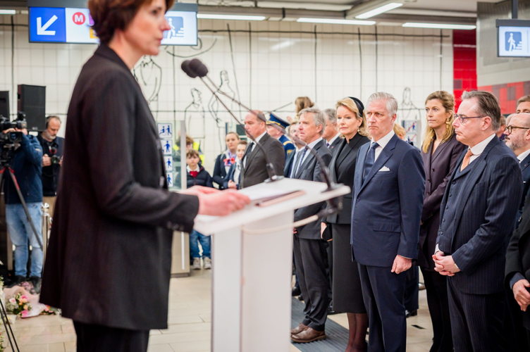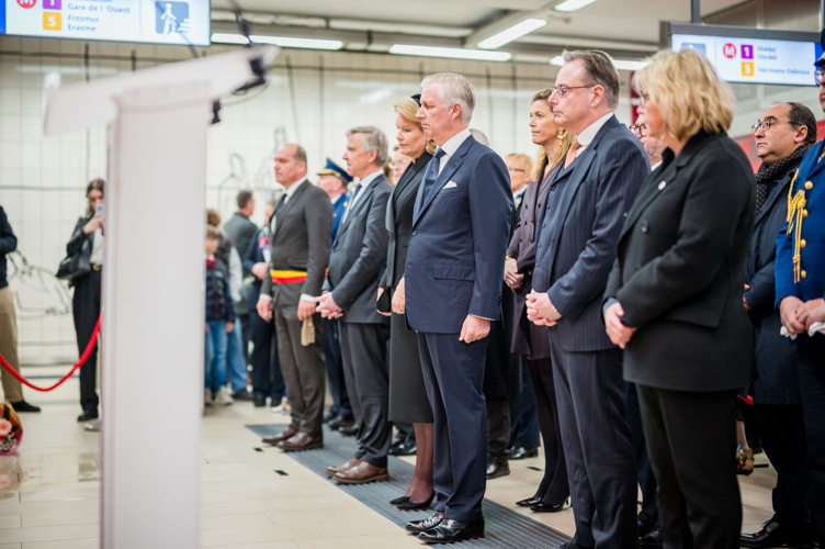 Leurs Majestés le Roi et la Reine, des victimes, des proches de victimes, du personnel de la STIB, des membres des services de secours et des officiels se sont rassemblés pour commémorer les dix ans des attentats.
