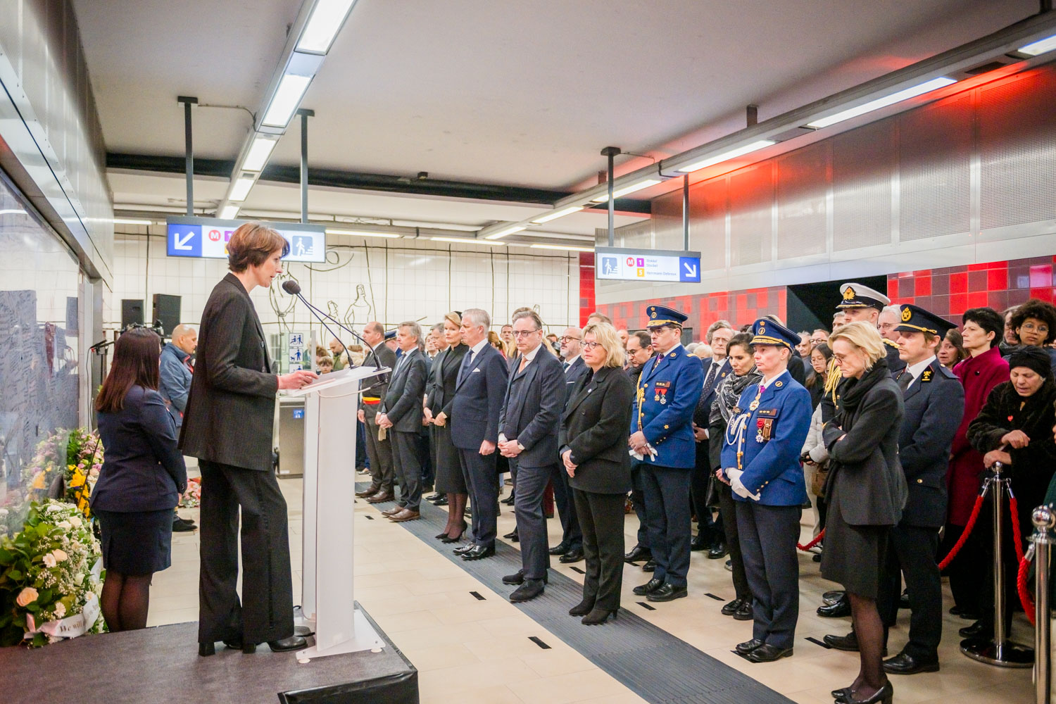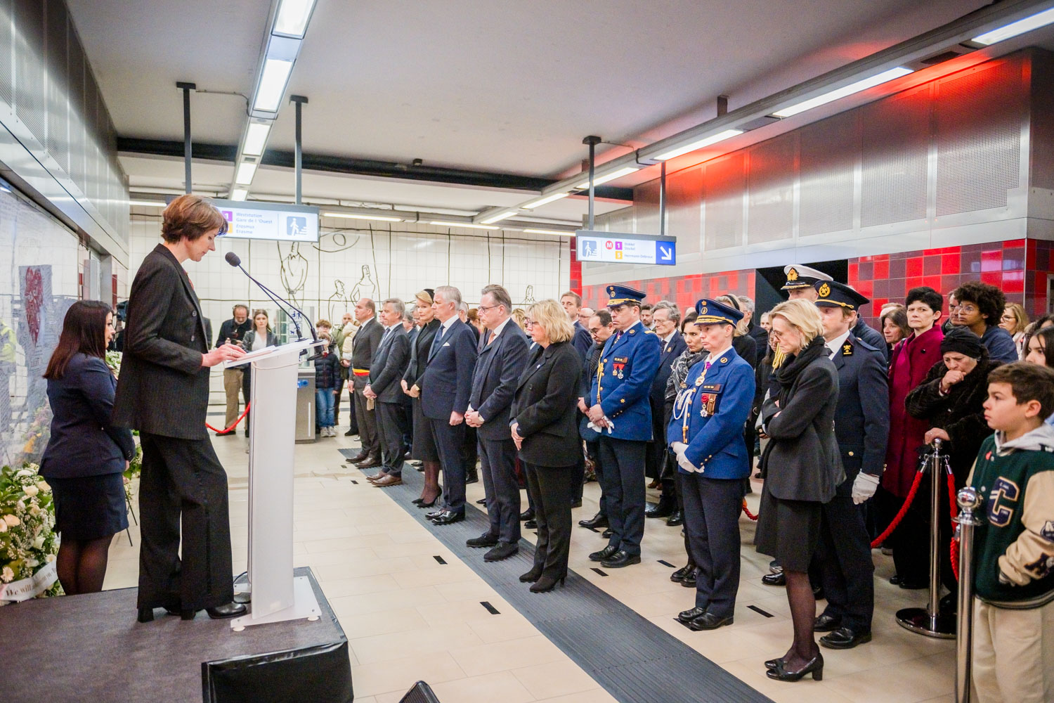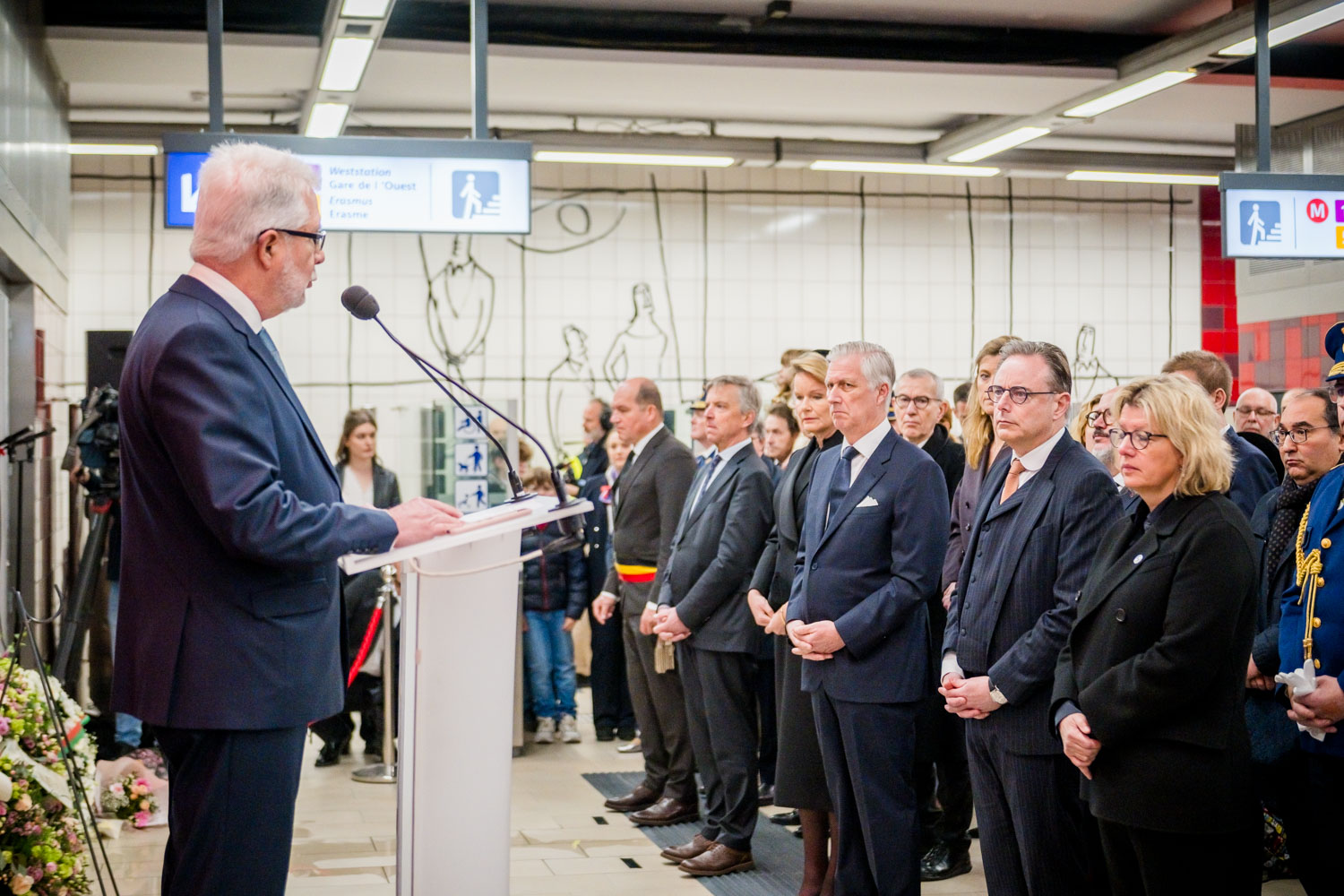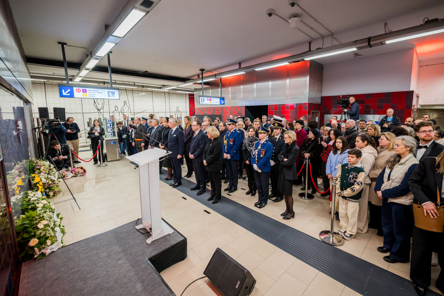 Leurs Majestés le Roi et la Reine, des victimes, des proches de victimes, du personnel de la STIB, des membres des services de secours et des officiels se sont rassemblés pour commémorer les dix ans des attentats.