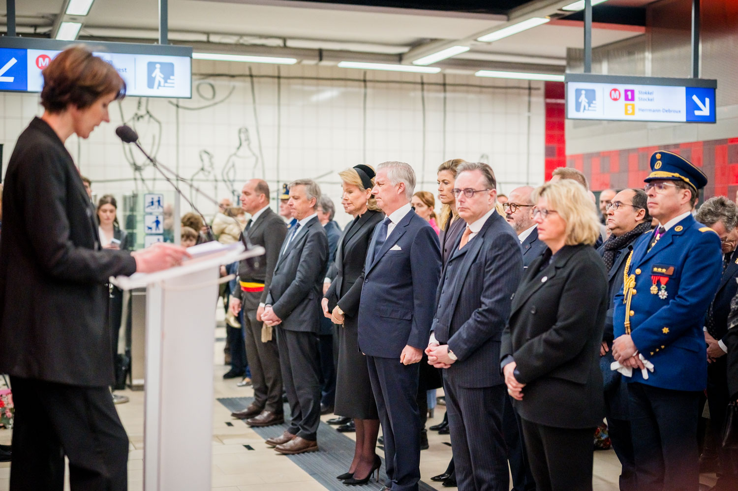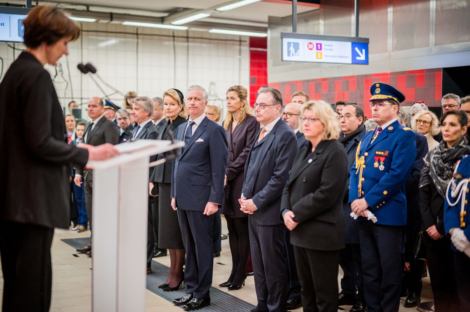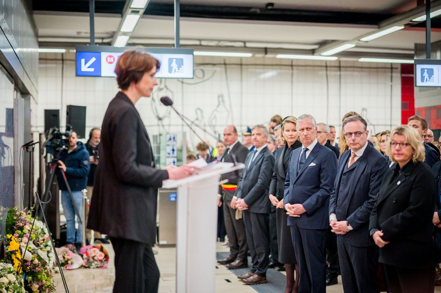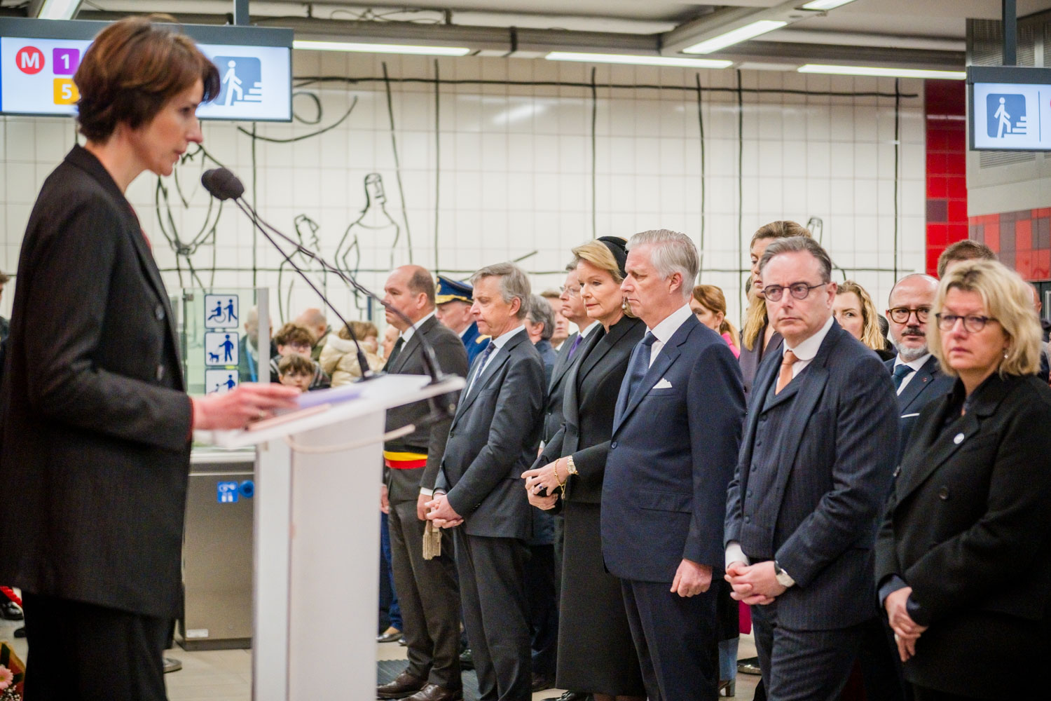 Leurs Majestés le Roi et la Reine, des victimes, des proches de victimes, du personnel de la STIB, des membres des services de secours et des officiels se sont rassemblés pour commémorer les dix ans des attentats.