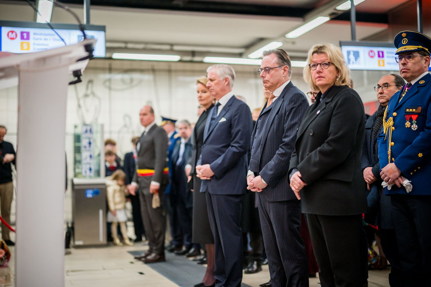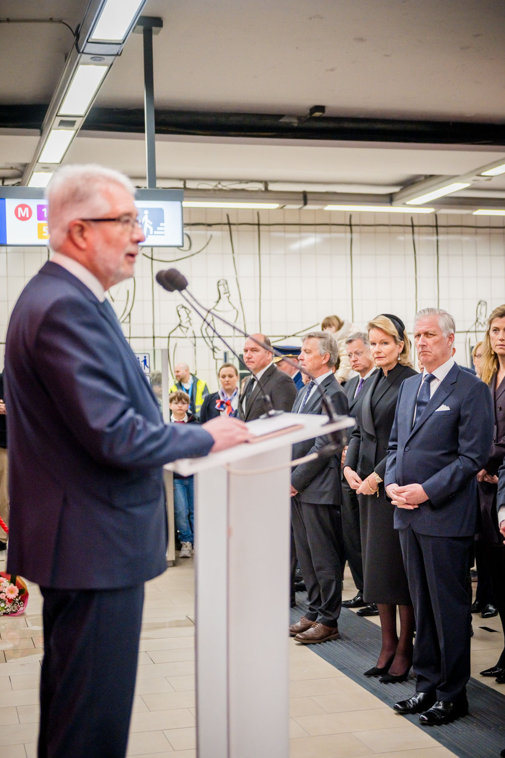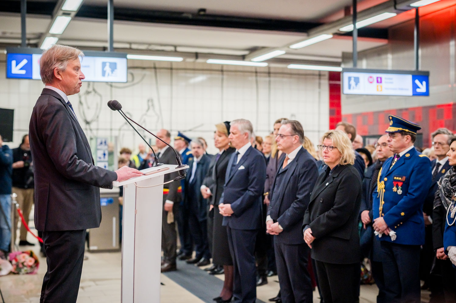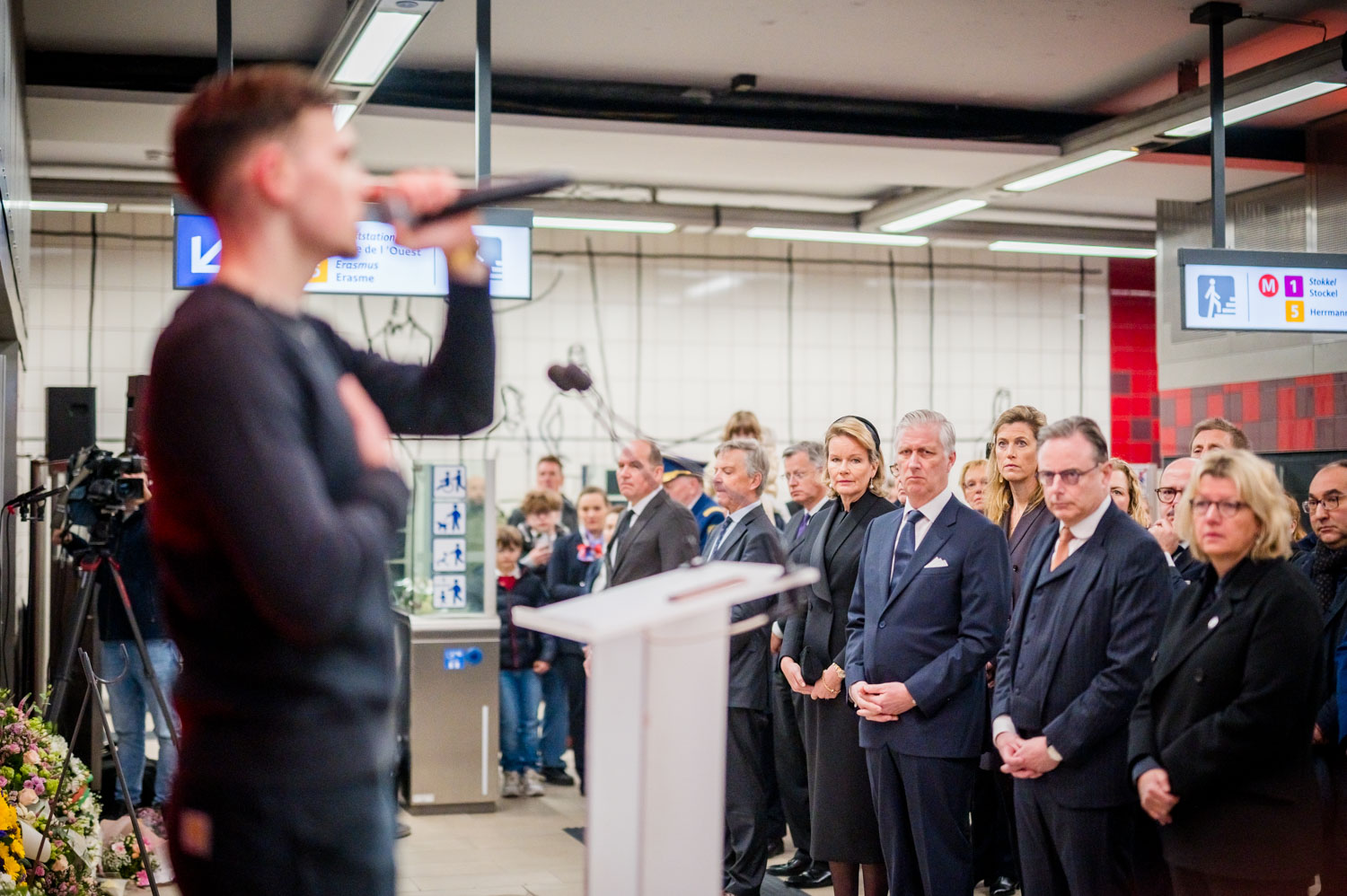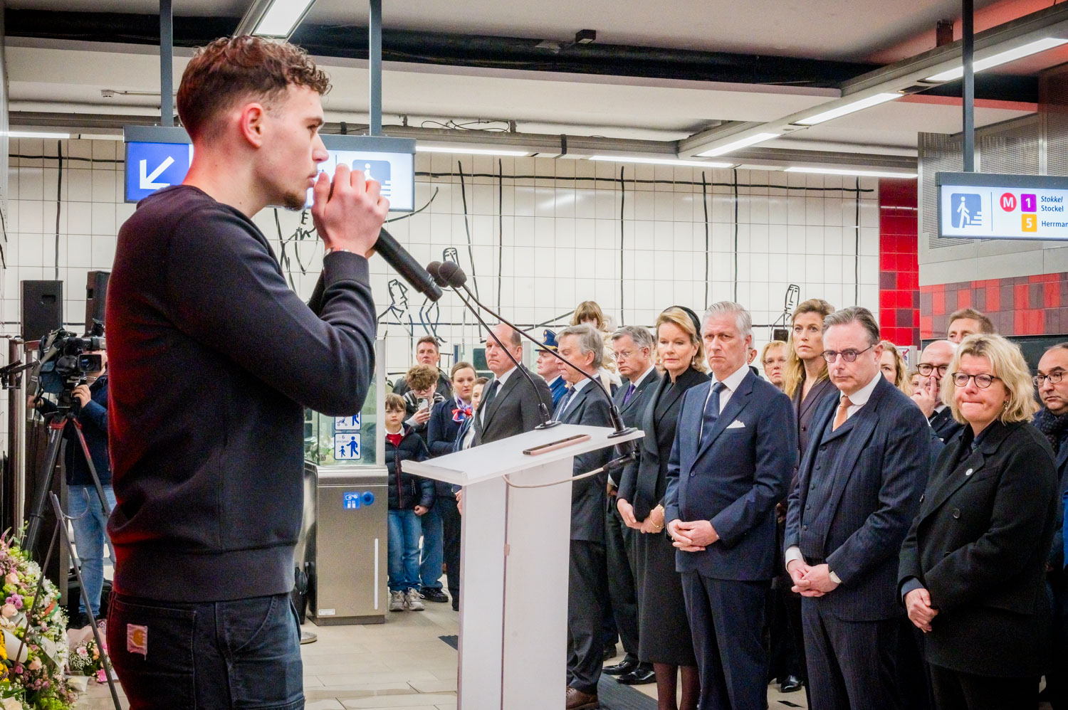 Leurs Majestés le Roi et la Reine, des victimes, des proches de victimes, du personnel de la STIB, des membres des services de secours et des officiels se sont rassemblés pour commémorer les dix ans des attentats.