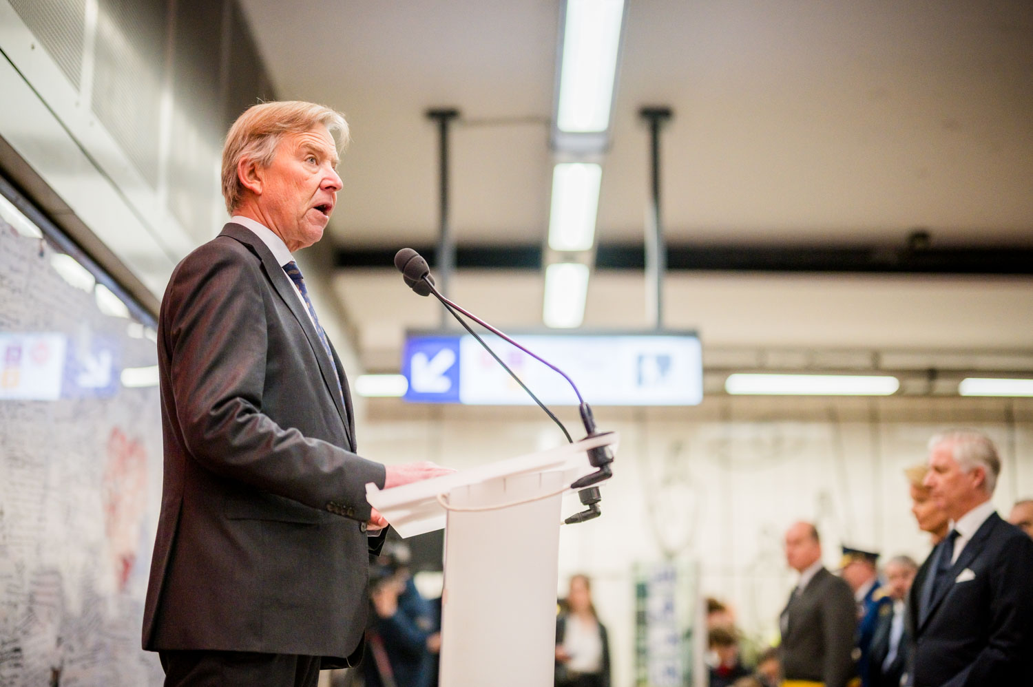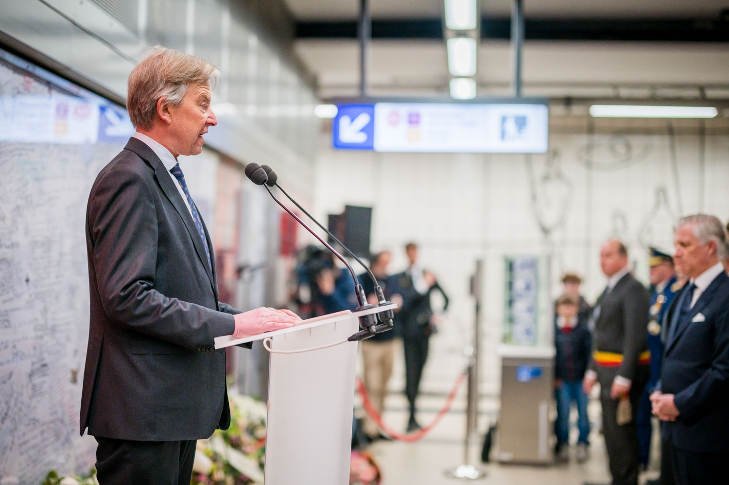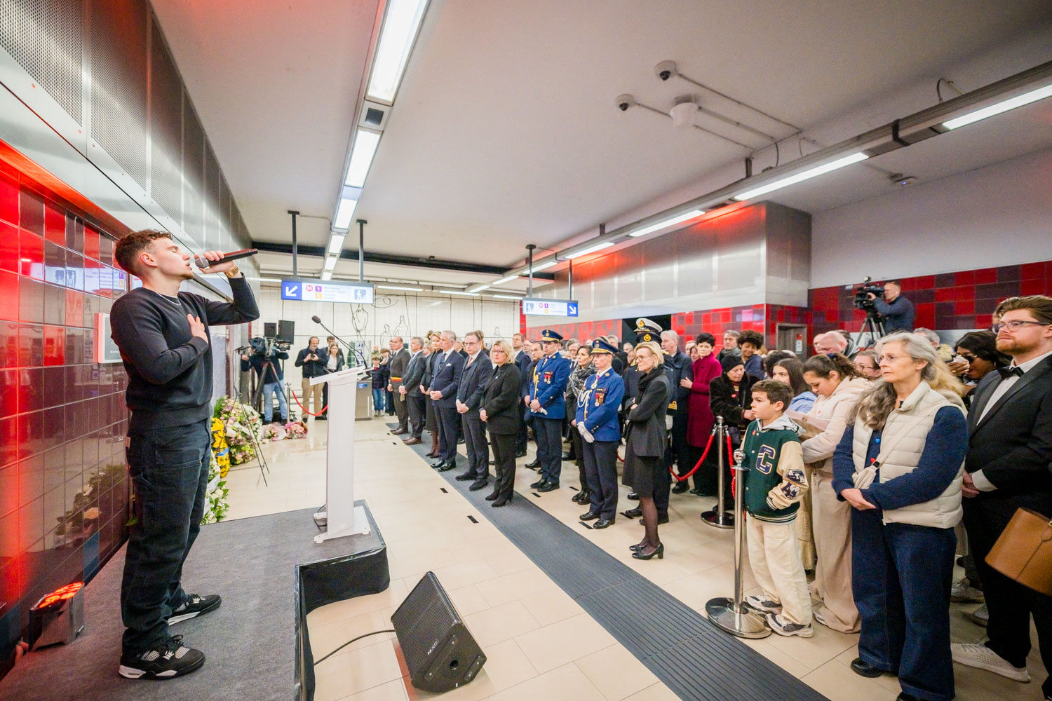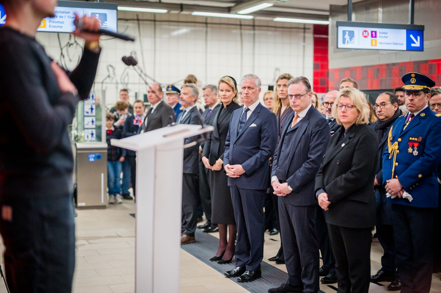 Leurs Majestés le Roi et la Reine, des victimes, des proches de victimes, du personnel de la STIB, des membres des services de secours et des officiels se sont rassemblés pour commémorer les dix ans des attentats.
