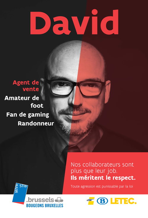 Lancée à l’occasion de la journée internationale de la tolérance le 16 novembre, la campagne met en lumière douze collaboratrices et collaborateurs des différents opérateurs ayant été confronté(e)s à des agressions dans le cadre de leur fonction. Elle met en avant les visages qui se cachent derrière ces chiffres. Car, en dehors de leur travail, ces personnes sont aussi parent, grand-parent, frère ou sœur, meilleur(e) ami(e) de quelqu'un, maître-nageur ou entraîneur de foot. Et le respect qu’on leur porte pour cela, ils le méritent aussi dans leur travail.