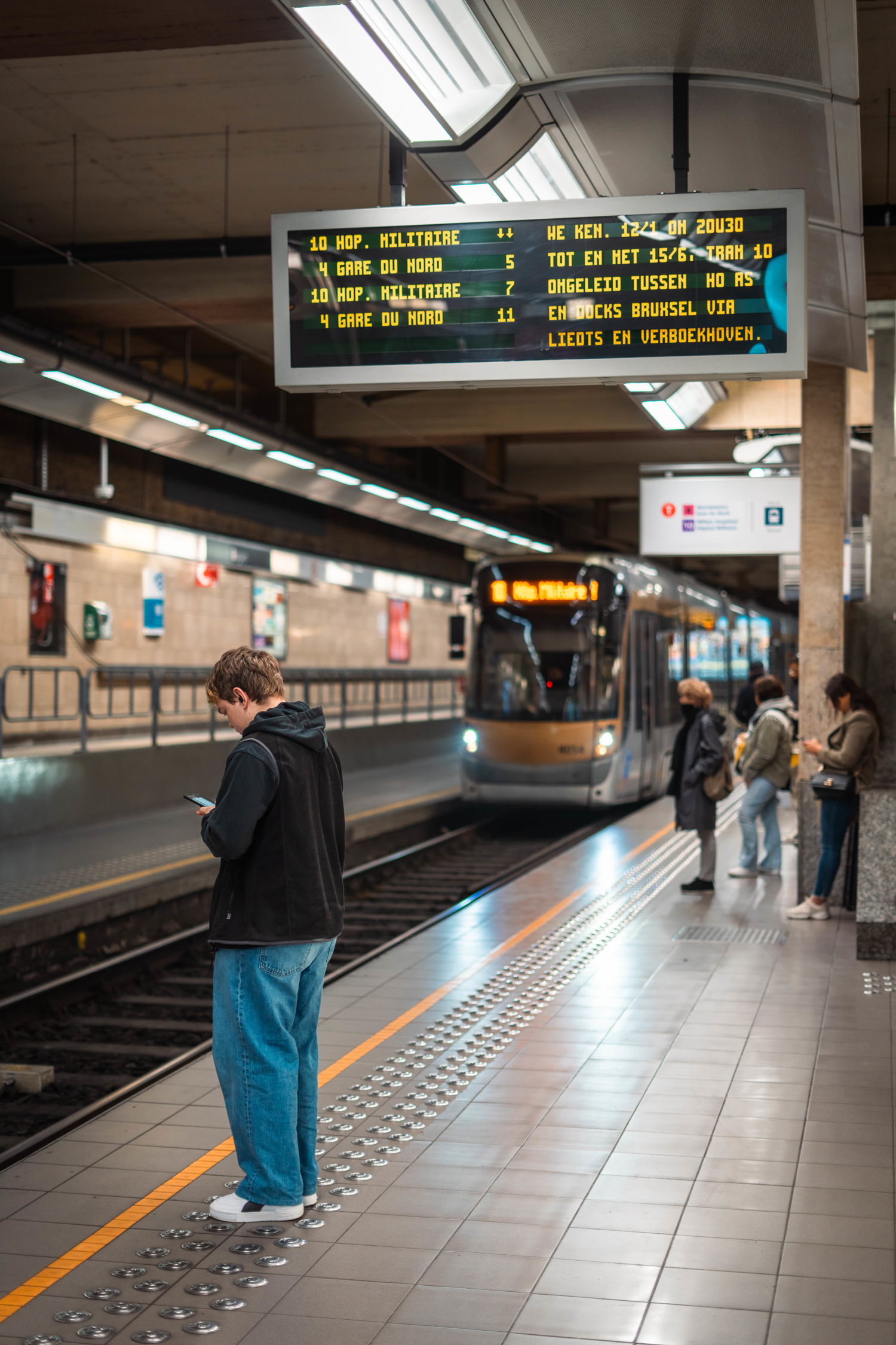 Afin de limiter l’impact du chantier pour les usagers, la STIB a mis en place des mesures d’accompagnement et d’information des voyageurs : fléchages, personnel présent sur place pour guider les voyageurs, envoi de newsletters, plans de déviations, etc.