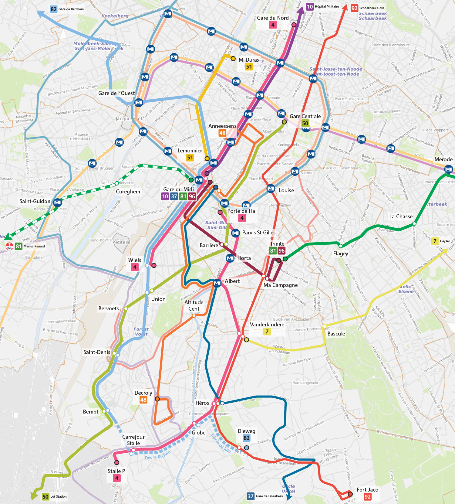 • Tram 51 : la ligne effectuera son terminus à Lemonnier au lieu de la Gare du Midi.