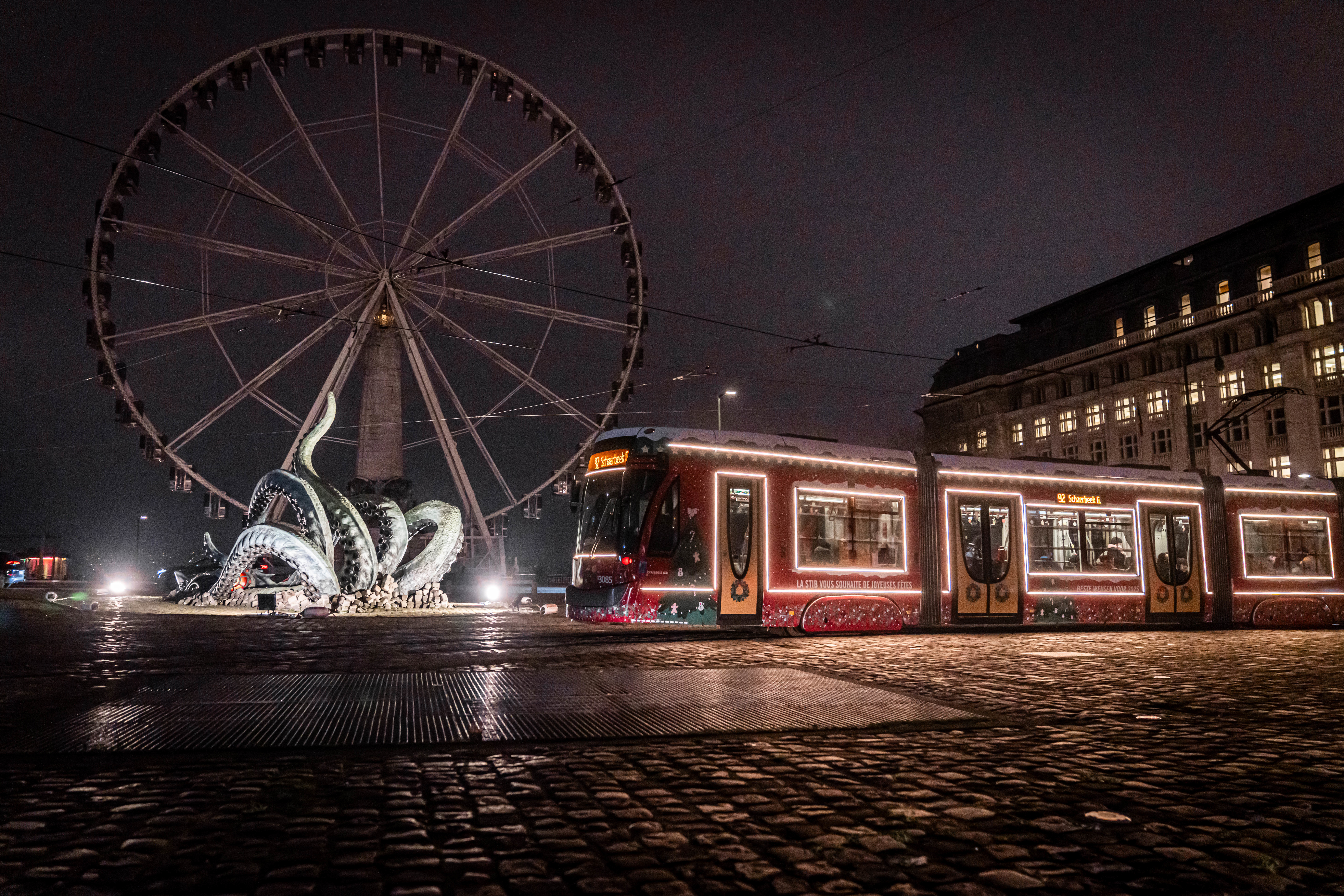 Les fêtes de fin d’année approchent à grands pas et l’ambiance de Noël s’empare aussi du réseau de la STIB. Le tram de Noël s’est élancé aujourd’hui dans les rues de la capitale. Il circulera sur cinq lignes du réseau jusqu’au 4 janvier et petits et grands pourront y rencontrer le père Noël le 17 et le 20 décembre.